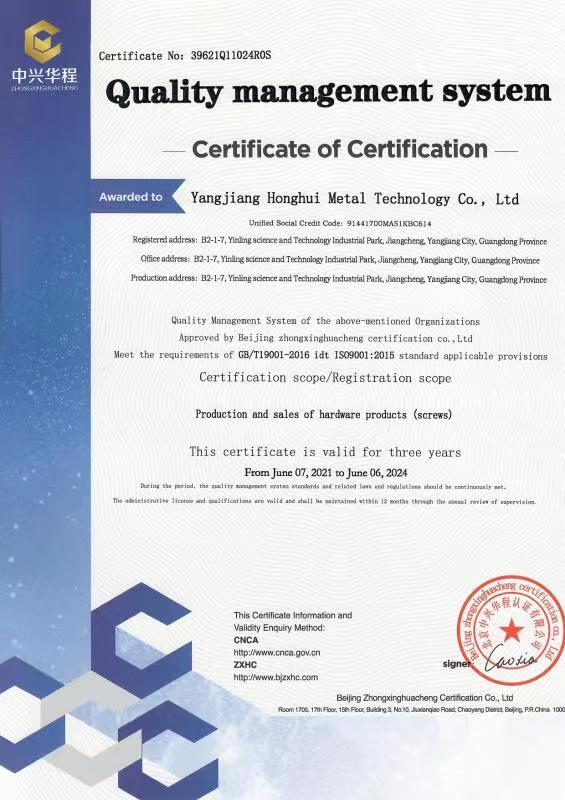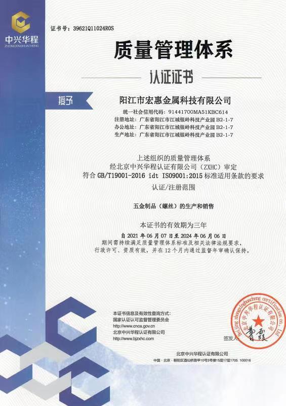 廣東宏惠金屬公司是家20多年一直專注鉆尾螺絲開發(fā)與生產的企業,是國內較早做鉆尾的廠家之一,同時也是國內專業開發(fā)生產鉆尾螺絲的企業之一。 我司地址為于廣東省陽江市江銀嶺科技園距沈海高速白沙出口不到2公里,距陽江高鐵站也只有十余公里交通便利。 公司占地120畝,擁有超500臺套專業設計 生產 檢測設備。一個超200人的專業團隊,能夠嚴格按照ISO9001質量體系要求生產符合GB DIN AS3566 ANSI JIS BS等標準的產品,生產銷售各種高品質緊固件系列產品,為中高端客戶提供優(yōu)質服務。也可按照客戶要求設計生產各種鉆尾,年產高品質碳鋼 不銹鋼鉆尾螺絲2萬余噸.在各大客戶的鼎力支持下產品暢銷全國,并遠銷亞 非 拉 歐等地,在這20多年發(fā)展的道路上我司堅持“以質量求生存,以信譽求發(fā)展”的精神理念不斷完善公司體系。
